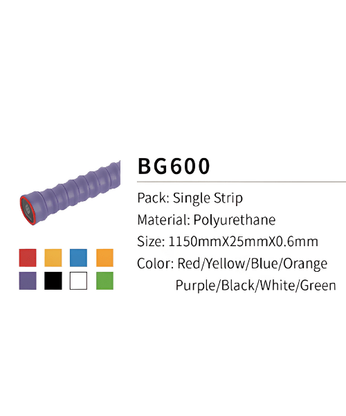 BG600 Overgrip – Pack: Single Strip, Material: Polyurethane, Size: 1150mmx25mmx0.6mm, Color: Red/Yellow/Blue/Orange/Purple/Black/White/Green